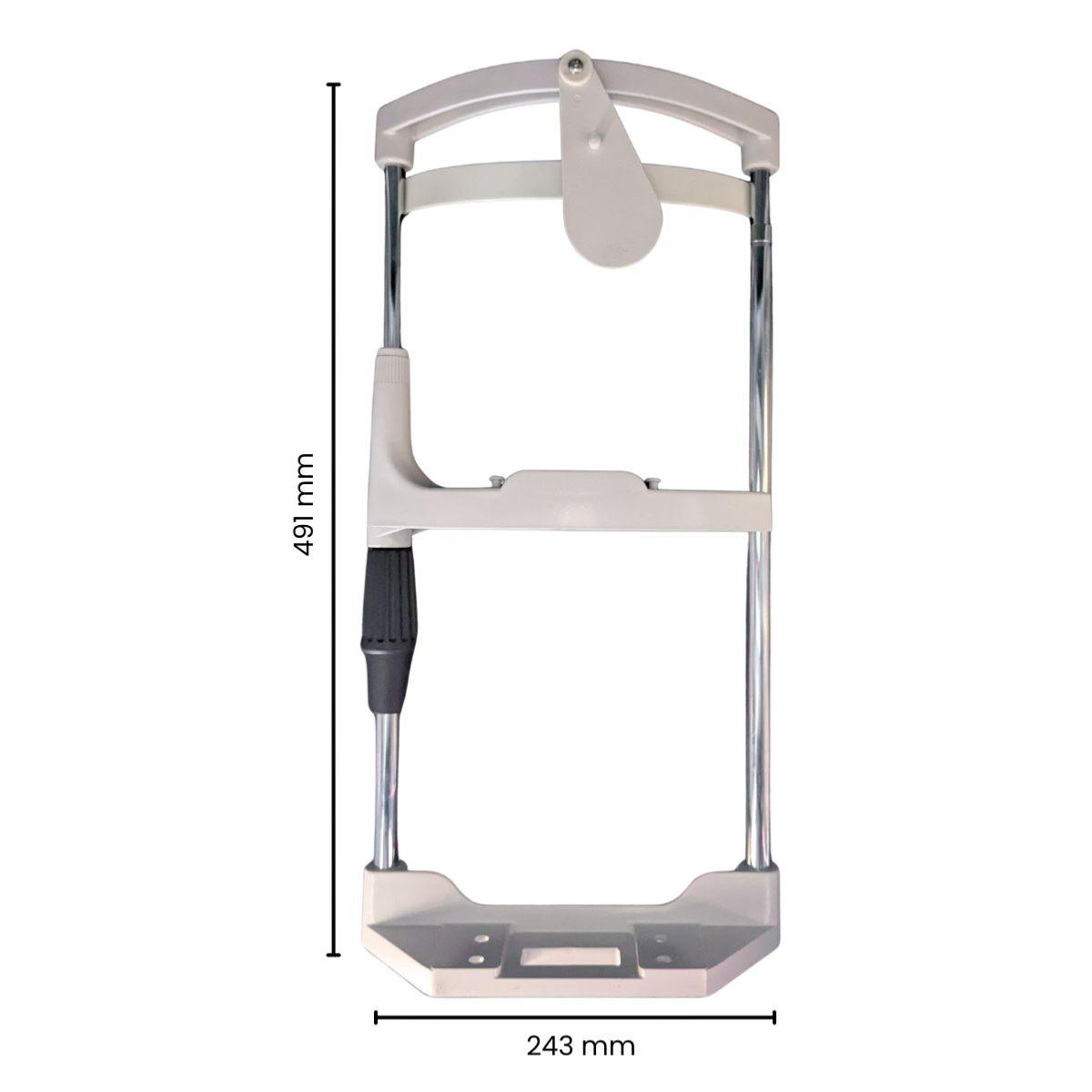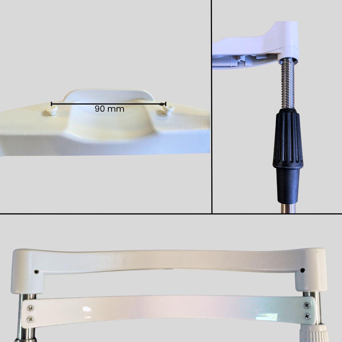La mentonnière dispose d'une poignée de réglage permettant de faire varier la distance entre la mentonnière et l'appui tête de 84mm.